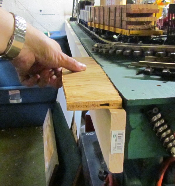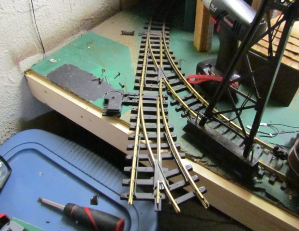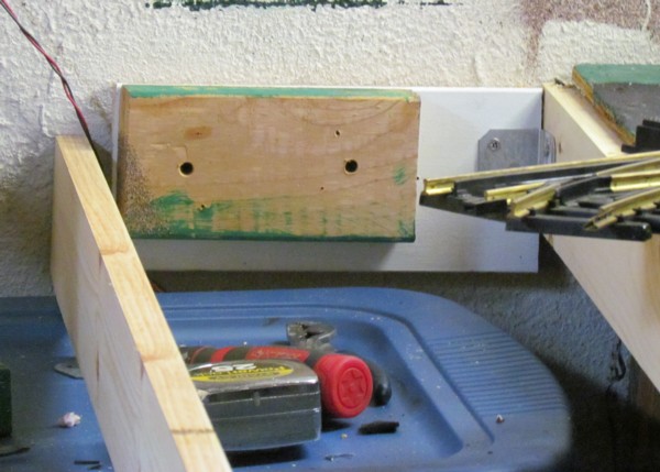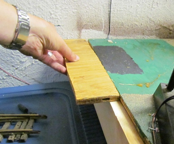 The M F & W needs a siding or 2 :) - ngauger - 09-18-2012 Well after debating about it for 2 weeks, I finally decided to add a 1 ft X 8 ft section to the layout. This will be just enough room for a siding. I decided to post it here to maybe help someone else that would like to try this technique. Add a section to your layout in about 2 hours..... First, working alone creates it's own problems. Some of them are dispelled by using anything of the correct height to use as a "third Hand" ![]() I used the 2 blue storage containers at the left of this picture. (Times are from the exif info of each pic) 7:06 PM 9-18-12........... Well - first it's good to screw a length of wood to the side iof the existing layout. Now, using the helper, you lay the far end of the wood on your helper and align the wood to the top of the existing layout. Use a scrap piece of wood that same thickness as your finished wood you'll be using for the extension. In my case - 1/2" plywood. Using a scrap piece of wood gives you the location of where to screw in a screw to mount the first piece of wood for the benchwork. Re: The M F & W needs a siding or 2 :) - ngauger - 09-18-2012 and - just repeat that for the other end...... 7:14 PM Re: The M F & W needs a siding or 2 :) - ngauger - 09-18-2012 7:34 PM OK - now to measure for the cross pieces. 12 Wide wood - 1.5 inches for the 2 long pieces (1 x 4's) so they are 3/4" think. Measure twice - cut once And the cross pieces are 10-1/2" each ![]() Re: The M F & W needs a siding or 2 :) - ngauger - 09-18-2012 8:24 PM After removing track form another siding, It's time to splice in the switch for the siding. This is the finished sections. Re: The M F & W needs a siding or 2 :) - ngauger - 09-18-2012 8:55 Attach the cross pieces for the extension. I started in the back and screwed a scrap piece of 2X4 to the 1X6. Re: The M F & W needs a siding or 2 :) - ngauger - 09-18-2012 8:56 PM After screwing the cross pieces to the first piece, it's time to attach the outer edge this completes the framework. Re: The M F & W needs a siding or 2 :) - ngauger - 09-18-2012 9:11 This one shows the wood panels in place. Not attached yet, Everything still has to be painted. Re: The M F & W needs a siding or 2 :) - ngauger - 09-18-2012 So in a bit over 2 hours, the layout is a foot wider