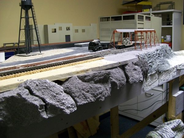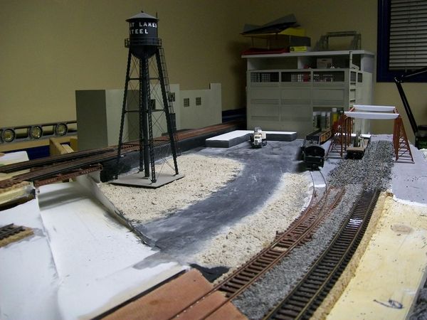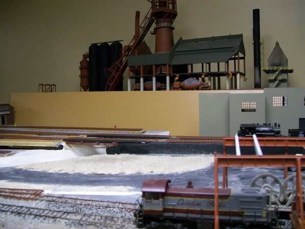 Re: Hamilton & Great Lakes Railroad - teejay - 02-05-2013 I don't know as much about Hamilton as I really should . My late father moved there in the '50s and then on to Burlington , Bronte , and Oakville . My step sister lives in Hamilton not far from Ivor Wynn stadium where they are restoring an old 3 story house . My recollections of Hamilton are the mountain and the long stairways up the slopes . I'll be building my own version of things , so won't really be referring to any old pics , but thanks anyhow . I might do a little Googling on Stelco . T Re: Hamilton & Great Lakes Railroad - Tyson Rayles - 02-05-2013 Looks like you are off to a good start T, really like the rockwork. Re: Hamilton & Great Lakes Railroad - teejay - 02-05-2013 The stratified rock is PoP while the more conventional ones are cushion foam , soaked in thinned joint compound and dipped in paint ...still needs dry brushing to finish it . Most everything in the pics is wood , or some form of plaster . T Re: Hamilton & Great Lakes Railroad - teejay - 02-07-2013 In my continued effort to avoid spending money on the new layout , and , at the same time use up various supplies and items I've accumulated in the past , I came upon 3 partial bags of sanded grout which I mixed together somewhat for my groundcover/dirt ....held in place with diluted white glue . Added more foam rocks although I haven't dry brushed them yet ....mixed up some grey paint and let the foam soak in it for a while . The black "air vents" on top of the building ( 1st pic ) are thumb controls from an old Sony Playstation controller . I don't throw anything out . ![]() Re: Hamilton & Great Lakes Railroad - Tyson Rayles - 02-07-2013 Impressive, very natural looking T ! Re: Hamilton & Great Lakes Railroad - sailormatlac - 02-07-2013 teejay Wrote:The black "air vents" on top of the building ( 1st pic ) are thumb controls from an old Sony Playstation controller . I don't throw anything out . Necessity is mother of invention! And by the way, going "cheap" is often a good way to have original and personnalized structures. Matt Re: Hamilton & Great Lakes Railroad - teejay - 02-13-2013 So , Ive been doing a lot of thinking lately .....can be "dangerous to my health " ...... about backdrops for my layout . After seeing Tysons latest effort , and some of the backdrops on other layouts I was trying to decide on what to do .The Pros : 1. Effective way to add interest and depth 2. Reasonable cost The cons : 1. In HO , most backdrops are 3-4 feet high and it would destroy the ease of managing my "walk-around" layout . 2.Low cost for masonite , yes , but I'm still adhering to a strict budget and a desire to use up what I have in materials . What to do ? I have a lot of complete and mostly complete models stored away from the old steel mill layout . Why not use them ? My new layout has a steel industry them about it . .......... Re: Hamilton & Great Lakes Railroad - teejay - 02-13-2013 ..........Soooooooo ....I'm going to try using my models as the backdrop , on a raised platform . There will be tracks to show off some of the unique rolling stock ( two hot metal cars can be seen in the pics ) but the tracks won't be connected to anything . I hope this doesn't look too goofy ...lots of work to do , maybe a rock facing to separate it from the layout and give some distance . T |