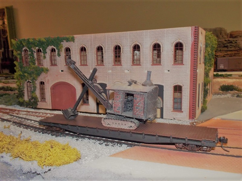 Re: Teejay : get off your duff challenge - teejay - 12-10-2016 The building is similar to one half of the Melbourne , Brunswick and Coburg Tram Shed , Australia , ........just the part that can look like a warehouse for my layout . T Re: Teejay : get off your duff challenge - teejay - 12-29-2016 The building is about done ( pics later ) and I'm moving on to the flat car with steam shovel load . How would the shovel be secured in real life ...guy wires , wheel chocks etc ? I can't seem to find anything in Google images . The flat car hasn't been glued together yet and details , grabs , brake wheel etc will be added . The steam shovel needs the various cables installed which will be a lot of fun for my old eyes . Re: Teejay : get off your duff challenge - doctorwayne - 12-29-2016 A new steam shovel might be shipped with the boom and shovel not attached, and perhaps with the stack not installed atop the boiler, although the photo below shows otherwise. The April, 2006 issue of RMC had a fairly lengthy article on Bucyrus-Erie, but most of the loads shown were of parts or partial assemblies of much larger shovels and cranes. Since the steam shovel appears to be weathered, I'd guess it to be travelling to a job site. Unless your overhead track clearances are very generous, the boom/shovel assembly should be lowered as much as is possible, with the control cab/track assembly moved closer to one end of the car to allow for this. Here's a photo of shovels in transit, but it's not close enough to show much detail and the site on which I found it had nothing else which showed anything better. I'd guess that there'd be at least a couple of chains or cables over the boom/bucket assembly, and perhaps some blocking fore and aft of the tracks...it's not likely that it would roll on its own, but careless switching might move it. The blocking would most likely be bolted to the car's deck or secured by extensions into the stake pockets. Wayne |