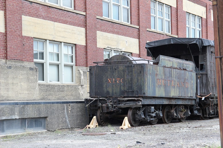 This week I would like to post a pic or two of a tender that doesn't even belong to a steam engine. In this case it a Rutland pile driver car. She was built at the Rutland shops way back in 19?? Crazy ( really don't know when) and now resides in Scranton PA. I felt this is a tender that deserves recognition as it's in a spot that is not easily viewed by the public. I like the rounded tank incorporated into the design. It's general shape lends it to something that could have pulled behind a camelback.