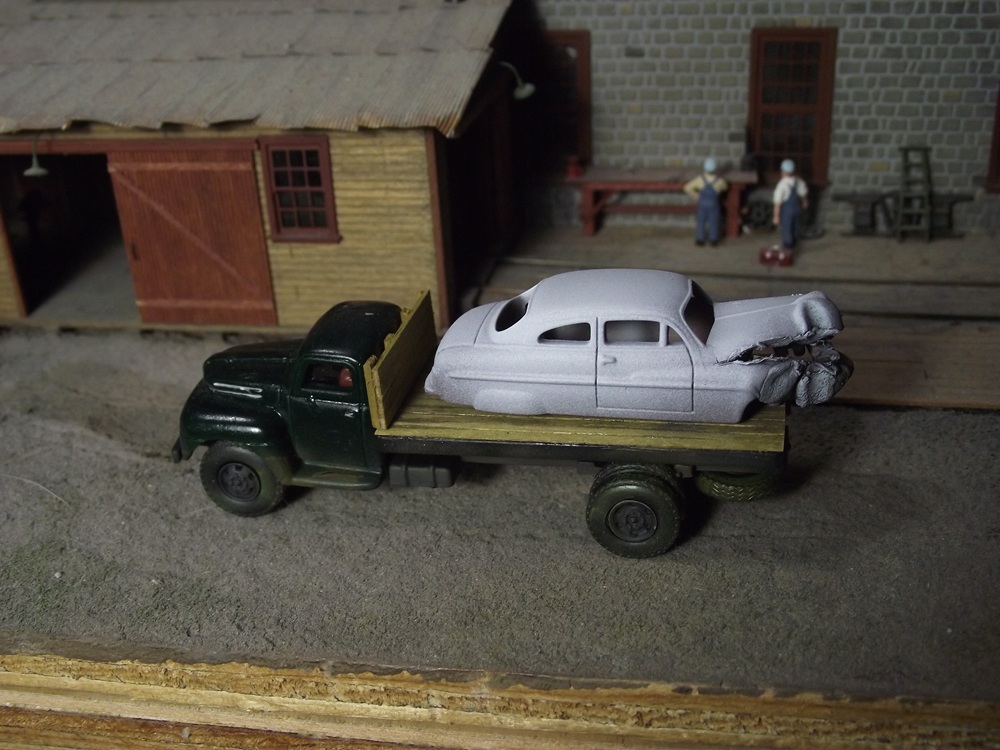 Alloy Forms Vehicles - cnrglen - 07-09-2017 I've been working to clear the stash of Alloy forms vehicles that I've been accumulating. First up, 1955 Chev 2 ton stakebed. ![]() Pretty easy build. the most difficulty I've ever had with AF vehicles is the fit between the body and frame. Usually I just need to file the frame down just a bit front or back. I painted the cab with Testors Teal and weathered the stakebed to make it look well used. 1949 Buick Roadmaster ![]() ![]() Painted in Badger's Canadian Pacific Tuscan. I was sort of inspired by the Tuscan color of the Hudson in Driving Miss Daisy. but I did find this color was available on the Buick. The roadmaster has always been one of my favorite cars with those portholes in front of the doors. The Whitewalls are peel and stick vinyl that come with the model. This is the first time I've used them and I like how they turn out. 1948 Studebaker ![]() ![]() I painted this one in a Badger BNSF green. It too came with the whitewall stickers. It's a bit of an odd duck, with the trunk and hood sort of resembling themselves. Re: Alloy Forms Vehicles - Charlie B - 07-10-2017 Those are very impressive. Looking good. Charlie Re: Alloy Forms Vehicles - Rscott417 - 07-10-2017 These came out great. I have an alloy forms mack cf pumper kit that I've been putting off for a while now. Re: Alloy Forms Vehicles - e-paw - 07-10-2017 NICE Re: Alloy Forms Vehicles - cnrglen - 07-11-2017 Thanks Guys. Rscott I think your mack pumper originally came from Lee Valley Models. I decided to give the 55' chev a bit of weathering ![]() I gave it a quick dirty-up with some polly-s dirt from my airbrush along the bottom edges of the cab, frame and wheels. I don't want to go overboard as I model the late fifties and this truck would only be a few years old. Re: Alloy Forms Vehicles - cnrglen - 07-15-2017 I built a few more to add to the collection. 1949 Hudson Commodore Eight. ![]() This is almost the same car from 'Driving Miss Daisy' 1941 Plymouth Coupe ![]() I really liked this one. Separate hood with motor ![]() I originally wanted to paint it Dark Blue but the airbrushed color came out more purple. I figure some Hot-Rodder customized it. When I was finishing up these I remembered that 30 years ago I bought Alloy Forms Junk car set. In there was the junk version of the Plymouth: ![]() and the Buick: ![]() and three others: ![]() I believe they are, 1956 Ford truck cab (I mounted it on a cut-down Athearn frame) , 1950 Chev fleetline, and a 1949 Merc. ![]() I have most of them scattered in my junk yard on the layout. Finally, I know they are woodland Scenics and not Alloy forms but a fellow modeller gave me the WS motorcycles kit: