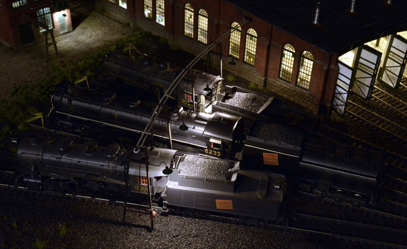 RE: South River Modelworks roundhouse project I've been working on - jim currie - 04-03-2023 verry nice looking reminds me of when i was dreaming of a layout and built a large roundhouse then reality snuck in and had to salvage what i could . Jim RE: South River Modelworks roundhouse project I've been working on - Ensign - 04-03-2023 Don & Jim, thanks for your nice comments! Jim, I will build an entire layout around this roundhouse if I need to! Greg RE: South River Modelworks roundhouse project I've been working on - Ensign - 04-13-2023 Hi everyone, I have been able to do a little more work on my roundhouse scene. First I decided to finish off the ballasting around all of my track work and have even started on the weeds and ground foam around this scene. I have also glued down some of the rusty parts that one might find around such a scene. I made the machine shop removable so that I could photograph through the backwall of the roundhouse. By doing so I was also able to place the LED distribution boards under the machine shop for easy access when it came to hooking up those LED's So I glued clump foilage around the base of my machine shop to help hide that seam. I also used a thin piece of cardstock glued under the track exiting the machine shop and the glued ballast down on that. This is how it looks when it's removed. Notice the LED distribution boards now exposed. I also added some workbench lighting over the large workbench inside of the roundhouse. Here is a better shot of it from the opening at the back when the machine shop is removed. That's all I have for now. Thanks for having a look! Greg RE: South River Modelworks roundhouse project I've been working on - Charlie B - 04-13-2023 Greg, It looks great and some very great ideas that you have shared. Charlie RE: South River Modelworks roundhouse project I've been working on - Ensign - 04-14-2023 Thanks! Charlie. Greg RE: South River Modelworks roundhouse project I've been working on - Ensign - 04-29-2023 Hi everyone, well work continues on my roundhouse. The kit calls for some outside steam lines to be built from styrene, .015 wire and even some brass etched parts. I decided to build my steam towers using brass parts instead of the styrene. I decided on brass because it would be easier to add some LED lights to the brass ones. Here's a photo showing both stryene & brass towers side by side. Here are those steam lines now installed over my outside storage tracks. This is how they look at night lit up. That's all I have for now. Thanks for looking! Greg RE: South River Modelworks roundhouse project I've been working on - Charlie B - 04-29-2023 That's very impressive Greg. I realize how much work it is to light a scene but the effort show up in the photos. Charlie |