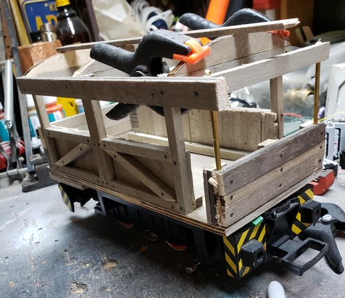 i also mounted a cross beam across the brass rods I put in the front of the engine and a support beam on the side of the roof joists.