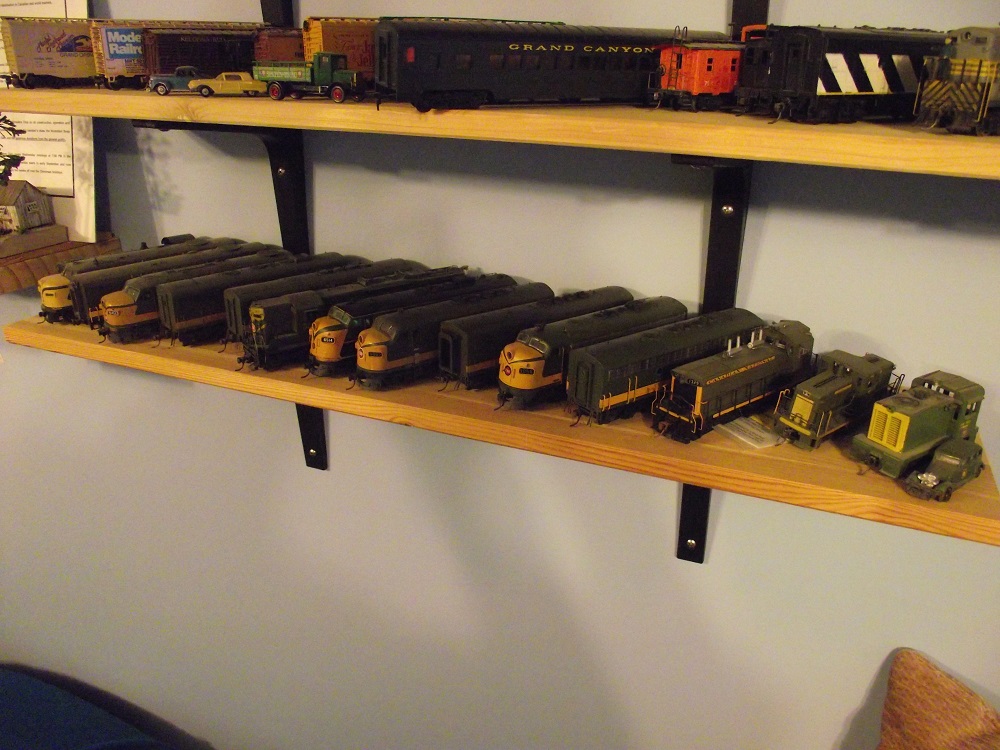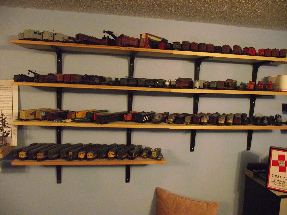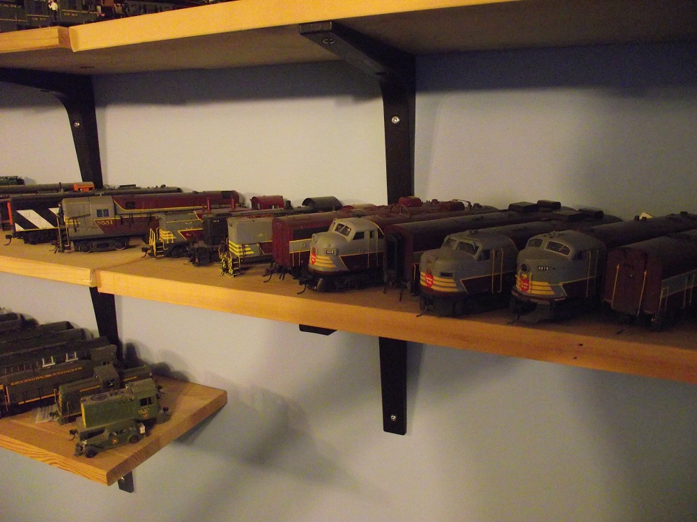 After getting the go-ahead from my wife, the 'land manager'. I started taking things off the layout this morning, starting with the rolling stock and engines. I never really kept an inventory of my rolling stock but I was surprised how much room it took to store it all: