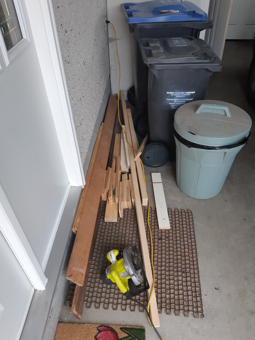This is the pile of Salvaged material that I have. I already used a fair amount when this picture was taken. Yesterday I also made a trip to a local pawn shop and found an almost new Ryobi circular saw for 30$. It's cheap but does the job. It's not like I'm building a house with it.