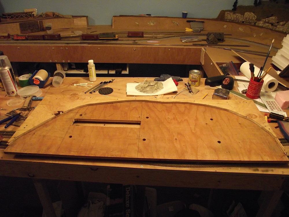 It took a bit of effort but I managed to clear the bottom of the wiring, switch machines and the remains of the old benchwork. There was only one piece that had been screwed in from the top and that meant only two screw holes to fix later.