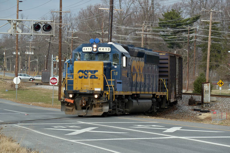 CSX 4412 leads MI-21 at Vineland, NJ on December 20, 2010.