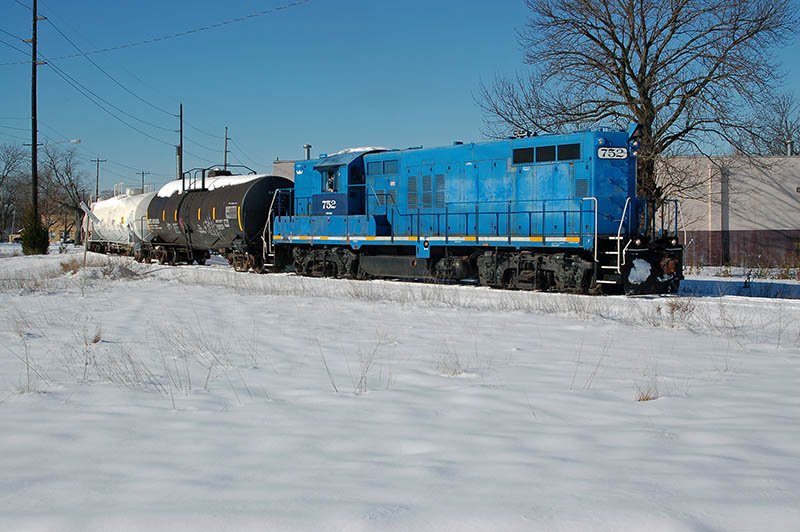 Winchester and Western's GP10 752 leads it's train thru fresh snow at Vineland, NJ on December 23, 2009.