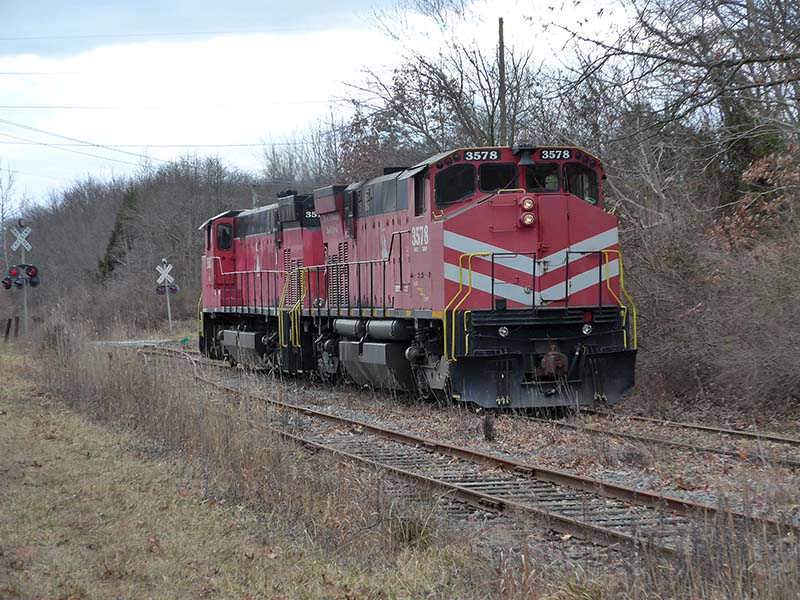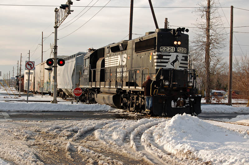 MI-21 crosses the old Central of New Jersey diamond at Vineland, NJ on January 26, 2016.