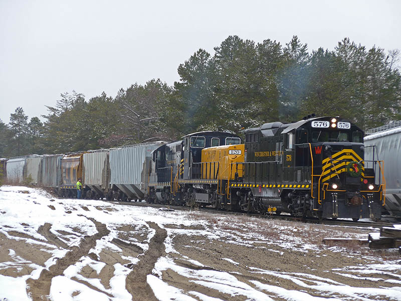 Winchester and Western getting cars in order for Durand Glass at Millville, NJ on January 22, 2015.
