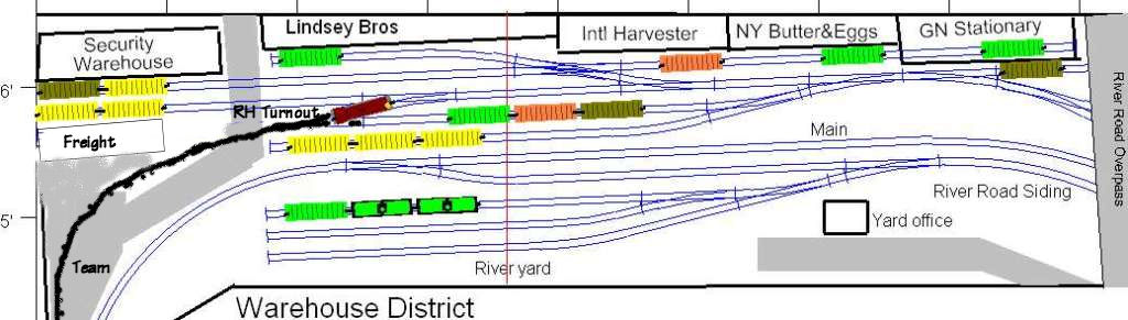 Galen - I never replied to your question about planned traffic. I am tempted to have different railroads serve different customers, with each train moving around cuts of around 7-8 cars, with one railroad serving the barge terminal, one serving the warehouses, and one serving the mill.