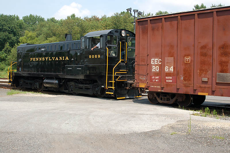 I was starting up our F-3 for an excursion as the yard shuttle backed onto the south turntable lead to pickup it's next load of visitors. July 2016..