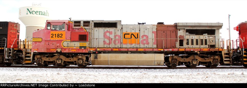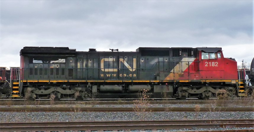 In 2011 CN purchased a number of second-hand locomotives including ex Santa Fe C40-8W #814 which became CN #2182.Here's a before and after shot of that locomotive.I found the original photo on "rrpicturesarchives.com" and spotted the later version recently in my hometown.