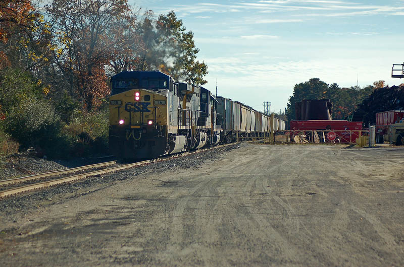 CSX 16 heads up a grain train of soybeans at Millville, NJ on October 31, 2015.