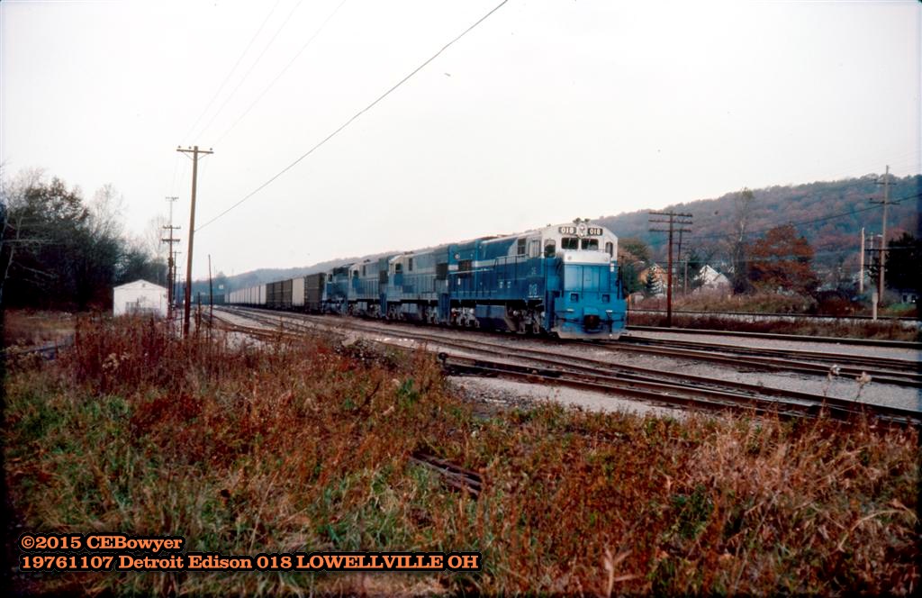 An empty Detroit Edison train at the lower end of the P&LE Gateway Yard. (the Yard stretched from the east end of Youngstown to Lowellville, Ohio. 5 miles)