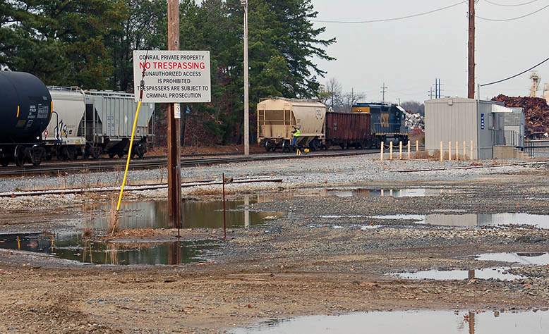 12/18/2015 Eastbound on #2 at East Palestine, Ohio. The bridge in the background was so the school students would have a safe crossing. It is 2 blocks east of the schools so walkers can go across the bridge without going out of their way.