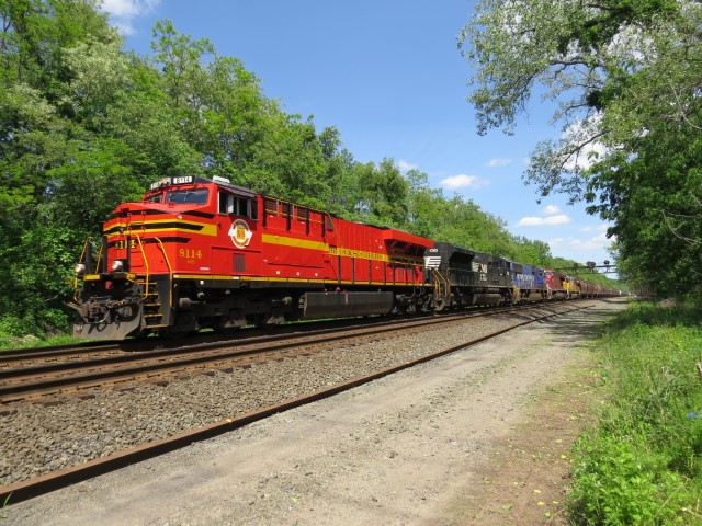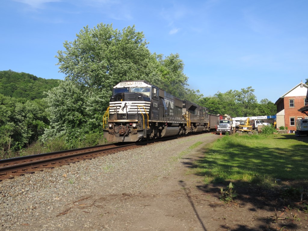Empty coal train passes through Vandergrift, Pennsylvania on the Conemaugh Line on 6-3-2017.