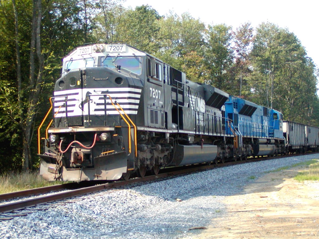 7207&7208 are leading an empty coal train at the load out in Winber, Pennsylvania at Rosebud Mine on 9-22-2008. Winber is located near Johnstown, Pennsylvania .