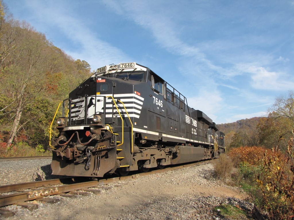 7646 is seen sitting at the Avonmore siding, near Saltsburg ,Pennsylvania on 10-24-10.