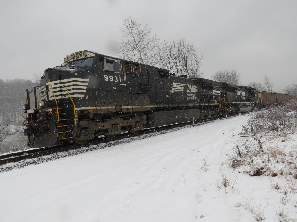 9931 Leads a loaded KJRR coal train at Logansport, Pennsylvania on 12-14-2013.