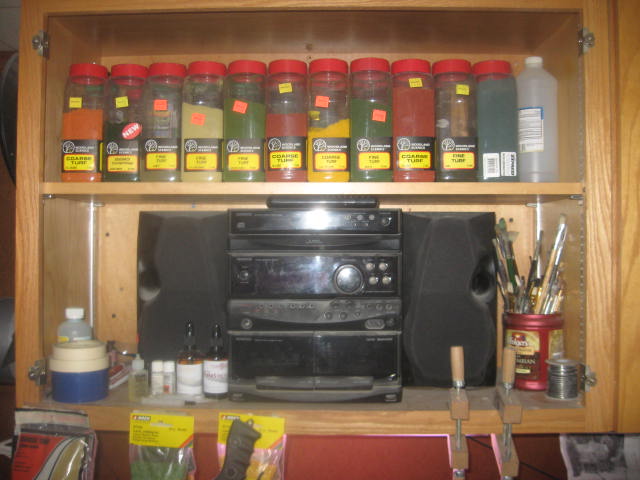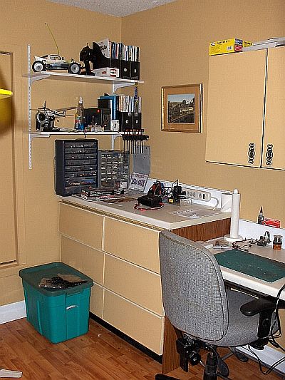Here is my shop at home... well the one for model railroading, RC and for music anyway.... doesnt include my other shop in the garage with all the big tools where my son works on all his smelly nitro cars Goldth Sawdust sticks to Nitro fuel residue really well!