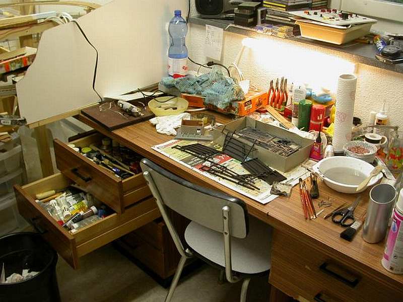 The third, somewhat older pic shows the more normal status of my workspace: Looking like the world before creation of the chaos!