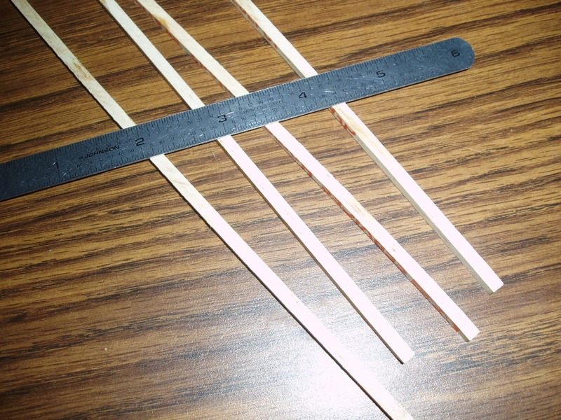 Here is a photo of my lumber. I don't know what the paint sticks are made of, but when ripped down to this size they are very flexible - almost too flexible. The wood is plenty strong, but soft. Once it is glued together it should work fine.