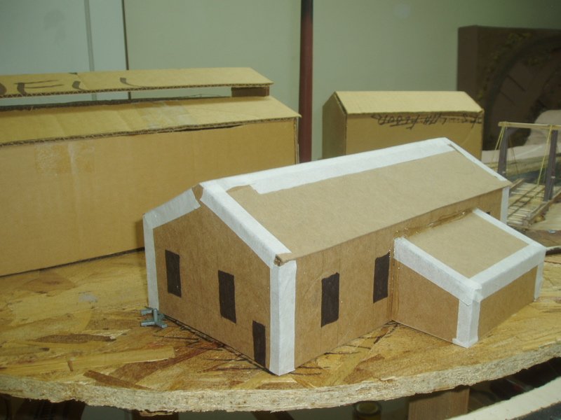 I like the mock up it is going to be a nice little house to tie up those engines of yours. I also would vote for a workshop either attached or nearby for fabricating all those speciality parts for your steam engines. It also makes for a good place for your shop crews to hide and play cards