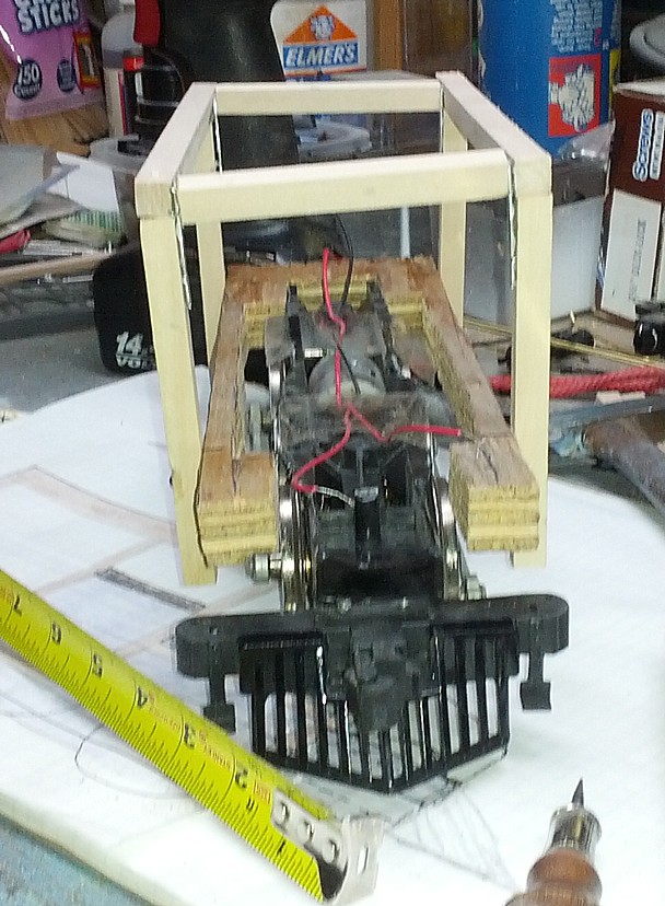 Turns out it looks OK for a 1:20.3 layout The cross bar at the top is only a spacer for the sides to keep them vertical while the glue dries. The "cab" is just placed on there for measurments and sizing too.