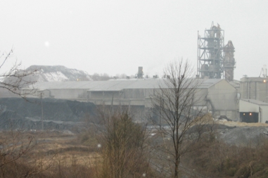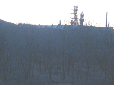 I got held up in work so by the time i got to the cement plant the sun was setting so this was the best pic I could get. If you look real close you can see the roof outline in front of the towers.I'll try again tomorrow,but they are calling for some possible snow.If the weather is bad I try another time.