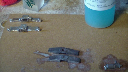 I have come to a stopping point on the flats did not want to get out the paint just for one flat car so started up on a Moxie old time boxcar so I have 2 cars now to paint, still need to get some O 3-rail trucks for the flats but have a stock pile of S trucks and couplers(I have 2 Moxie kits one in O and one in S which I have started up on). Trying to see how well metal blackener works on the detail bits. here are the pics of the progress so far.