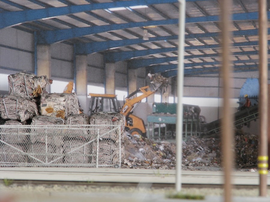 I finished up the recycle center using chopped newspaper to make bales and trash: