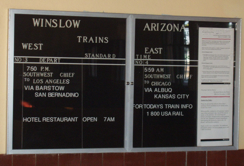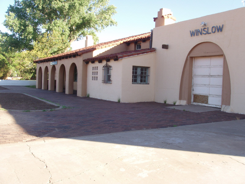 Winslow, Arizona has an old station linked to the La Posada Hotel, an old Harvey House. Not much is left, but they are planning on restoring it, just as they did the hotel.