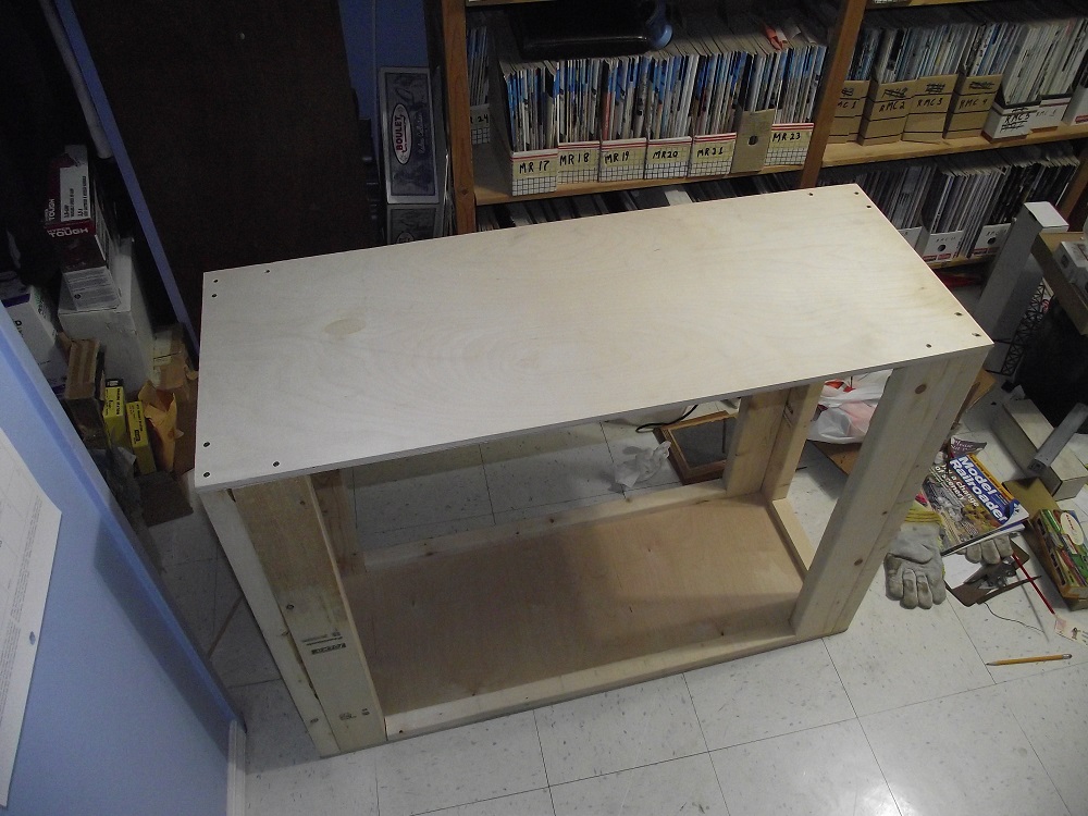 Our carpenter made this for me yesterday. I'll finally have a place to put Hemsley and get my layout space back. It will be at a good height that I can sit in my rolling chair to work on it. I'm heading to Lee Valley Tools today to get some casters so I will be able to roll it around. I'll also be painting it. I'll mostly be keeping it in my workshop and brought out for guests to see.