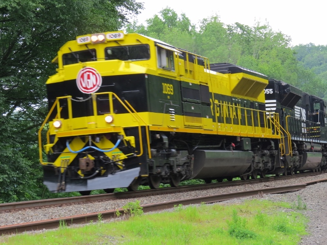 Ns 1069 leading a 595 (empty coal train) West on the conemaugh Line yesterday afternoon through Salina,Pennsylvania.