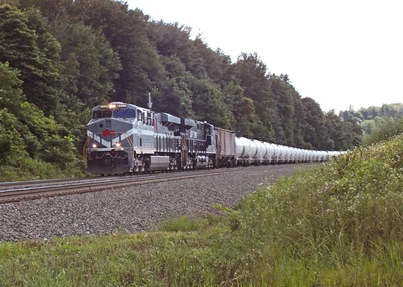 East bound through Enon Valley 5:55 pm NS 8114 on oil train 64R