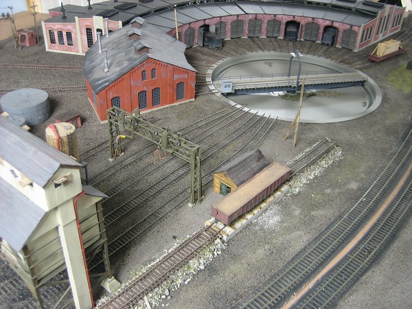You can see I am placing a few more utility poles around the turntable and I decided to relocate the Sand/water bridge to the other side of the Coal dock.