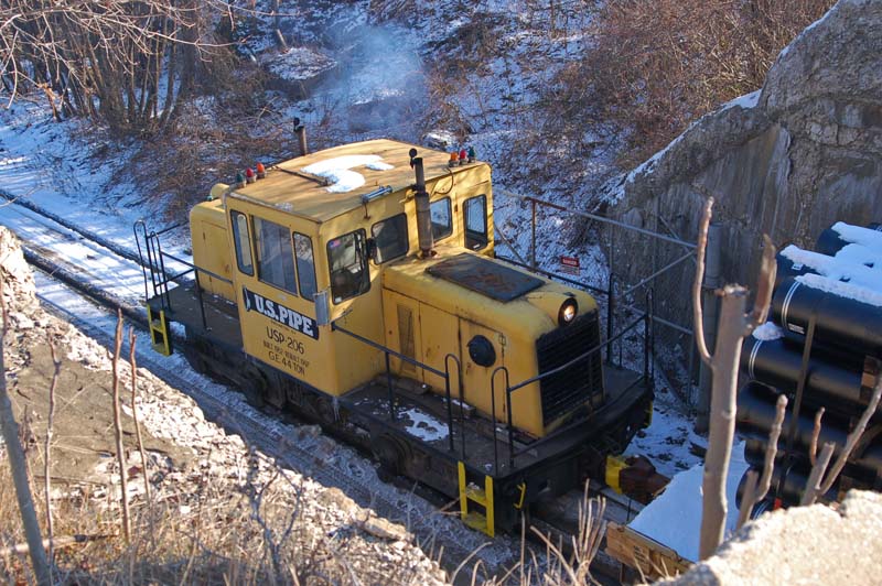 US Pipe GE 45 ton side rod at Burlington, NJ. (It's mislabled as a 44 tonner.)