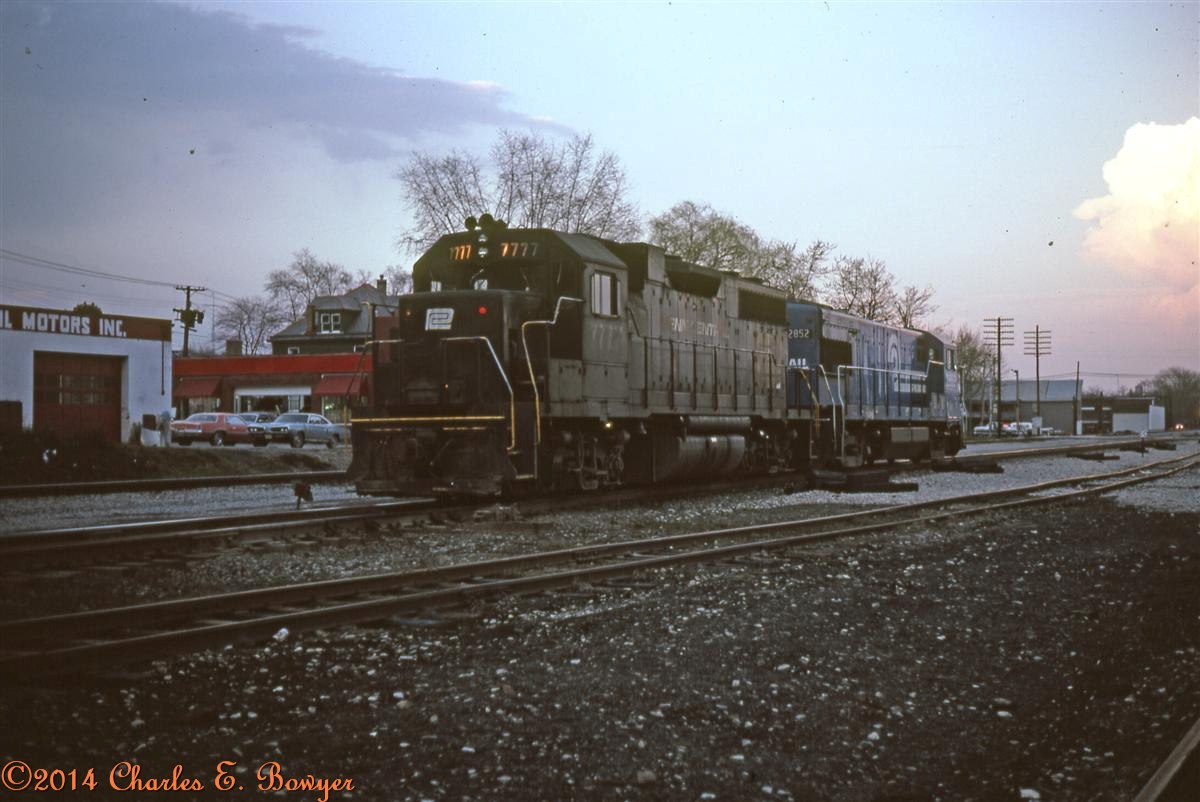 Not a B23-7, nor a number 2800, or even a Conrail locomotive, but the photo below was also taken in New Brighton, Pa, at just about the same place, albeit on a different track....