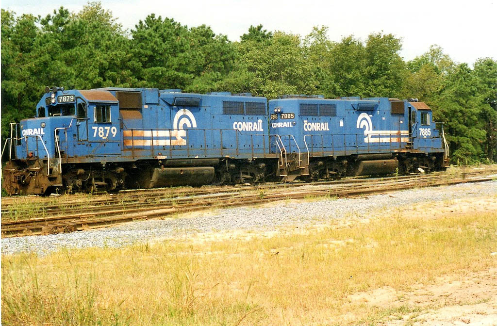 Conrail GP38's 7879 and 7885 at Millville, NJ Sept 1995.