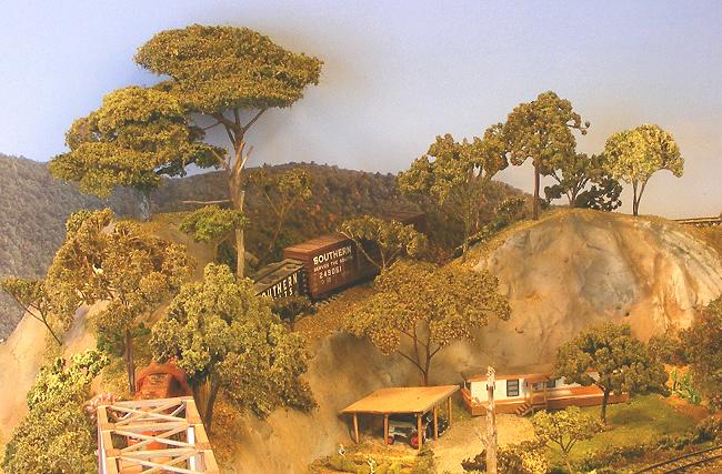 A double headed train on a 1 x 3 foot board…with room to spare for a few more cars…what’s not to like about that? Oh yea, and it’s the Southern Railway.