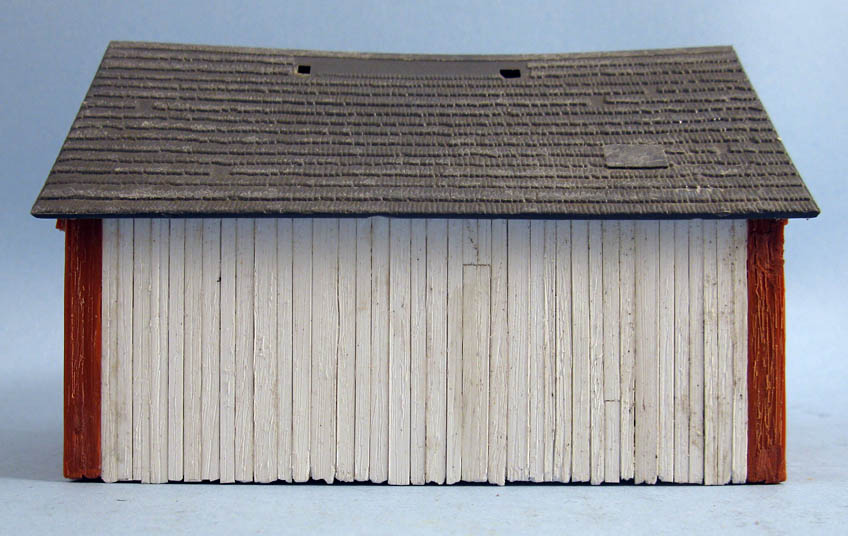 We are still working on working crossing signals and wiring is now complete with every gremlins out of our way. I'm also having someone building a custom curved layout for Clermont because the Shinohara geometry doesn't fit the space available and caused issues with some locomotives and rolling stocks. Meanwhile, my first real project was improving a cheap and beaten down Revell stable. We got that structure from a lot a few years ago. But while the size was good and the deformed roof a nice feature, it was hard to find a reason to have such a cutesy looking building on the layout. Thus I decided to remove the long walls and replace them with blind one made of distressed styrene stripes. I put care in making them look rotten at the bottom. The roof was made out of corrugated paper found at a local art store. Cost almost nothing, easy to cut, easy to glue and easy to paint. It definitely becoming a favorite of mine for steel structure. The painting was straighforward. Wood is covered with a coat of Krylon Camouflage Tan spray paint, then followed by a mist of white then weathered with a mix of black and burnt umber oil paint wash. Roof was painted limestone light gray then heavily weathered with full-strength oil paint. Took a week to dry, but I really like the result. Once put back on the layout, the structure is truly at home and set the semi-abandonned rural feeling I wanted. Now, I'll have to tackle the house. ![]() ![]() https://2.bp.blogspot.com/-HbplvP-p4ik/W..._2086b.jpg ![]() ![]() ![]() ![]() ![]() ![]() ![]() ![]() Matt