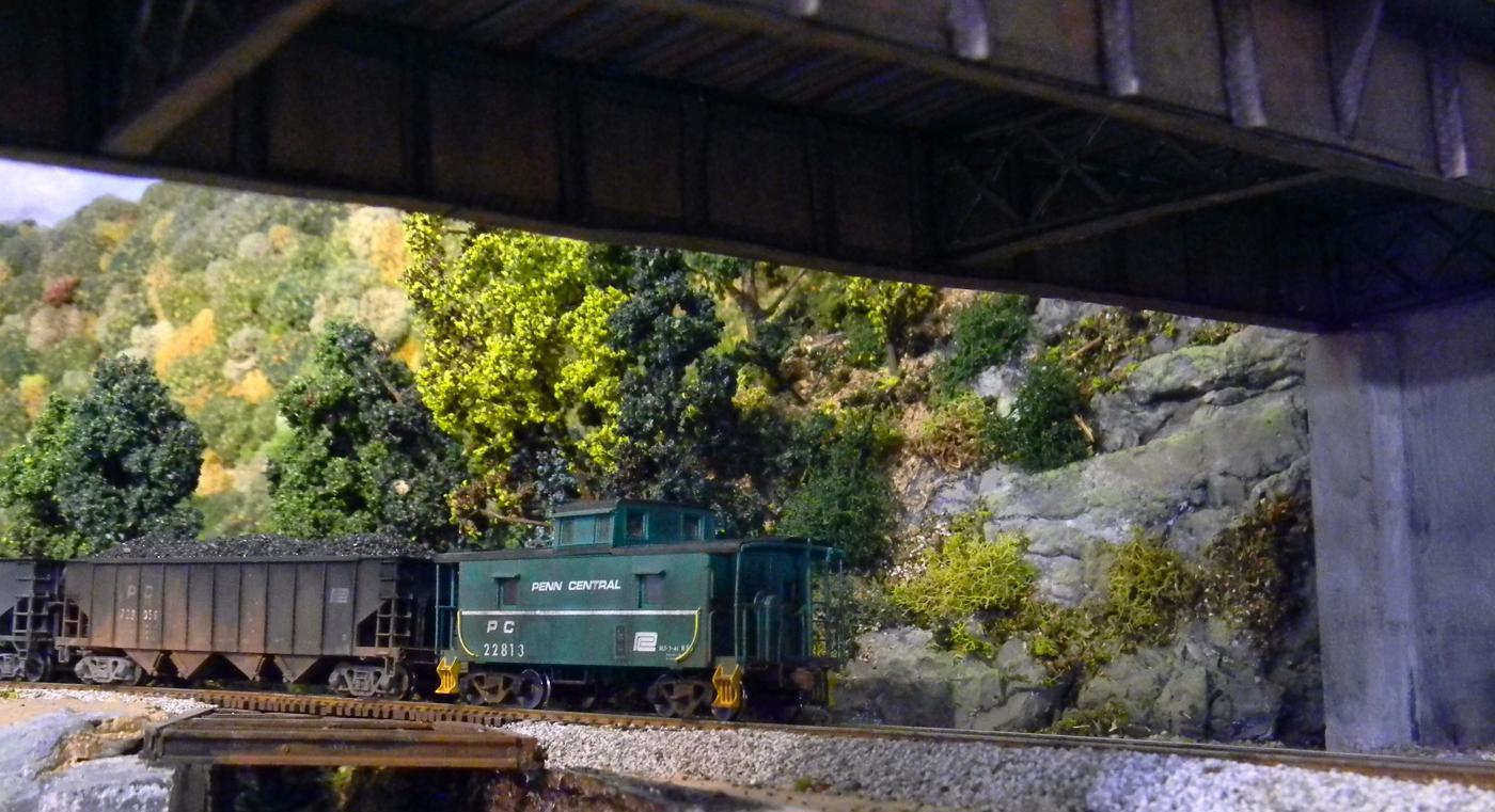 Rolling coal down into the gorge with this former Penn Central cab unit...