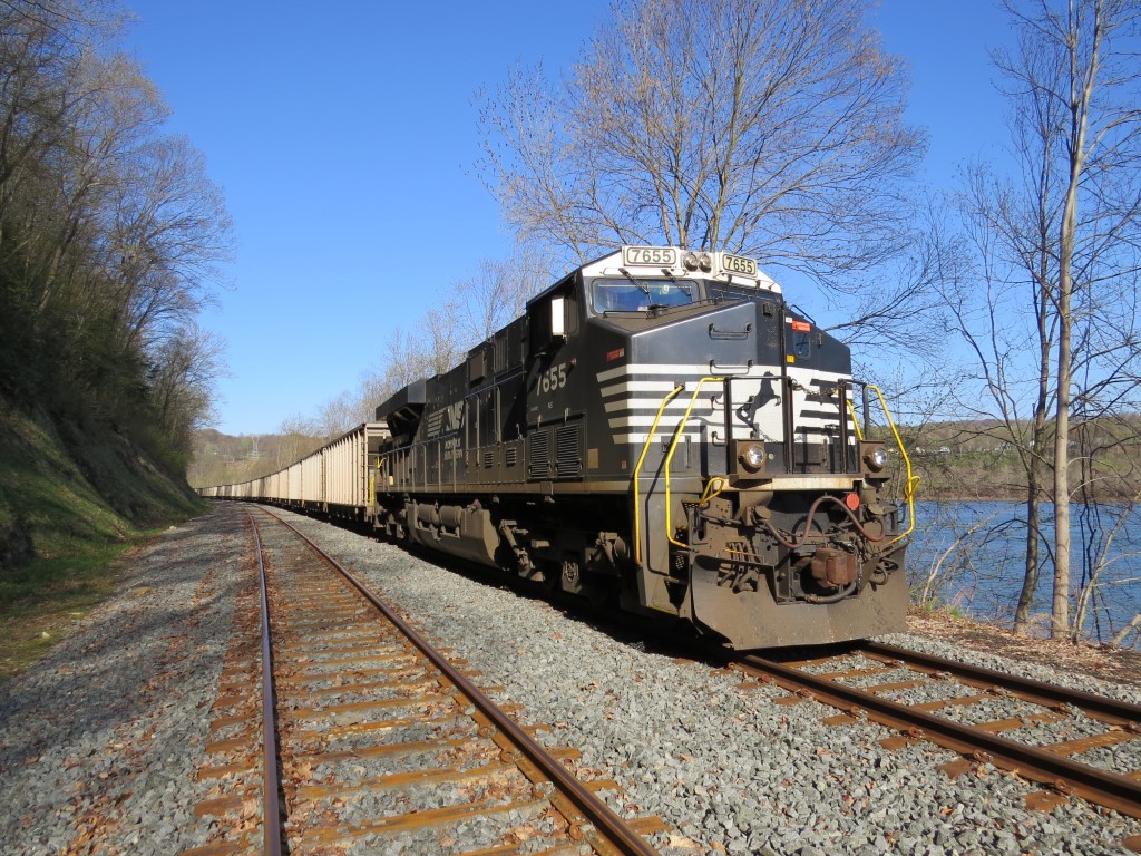 An empty coal train sitting on the Line North of the Kiski Junction Railroad at Logansport, Pennsylvania on 4-24-2013.