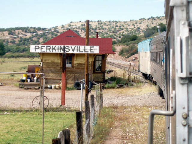 P = Perkinsville Sstation as seen from the Verde Valley RR out of Cottonwood, Arizona.