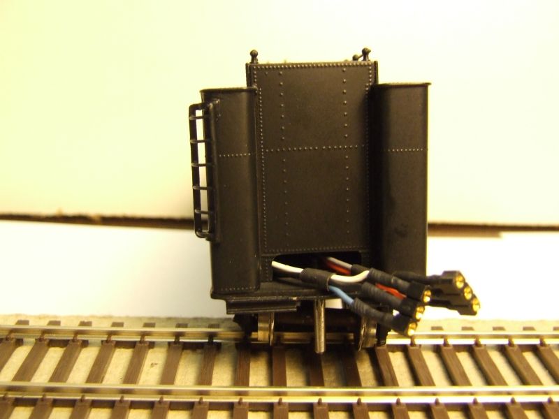 A few more shots of the tender. Front and back. I decided to change my wiring setup from the locomotive to the tender. I made a small opening in the front of the tender shell as the pictures show. This way it is easier to seperate the tender form the locomotive when needed.