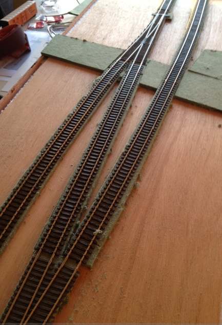 I've come at a stand still for a moment, as I realised I wanted some form of roadbed, not a very thick one, but a little bit of height to it, so I need to get myself some cork, carpet underlay tiles, or double sided tape to do that. Until I have something suitable, I will not permanently fix the track to the module board.