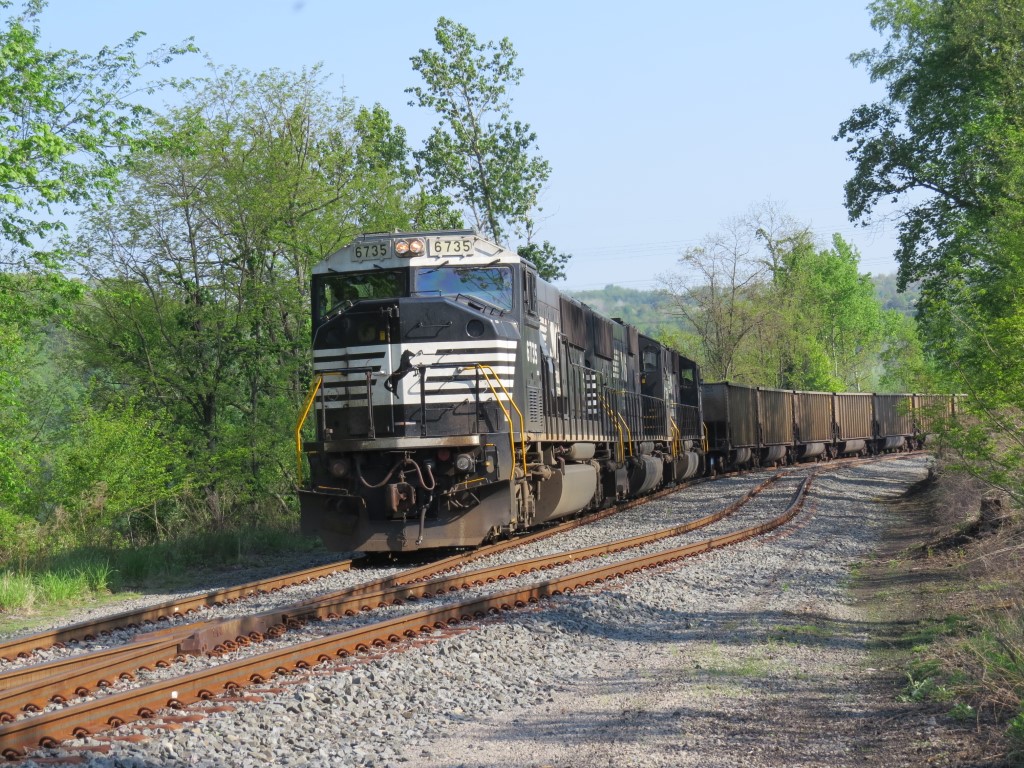 Coal train leaving the Kiski Junction Railroad on 5-12-2012.