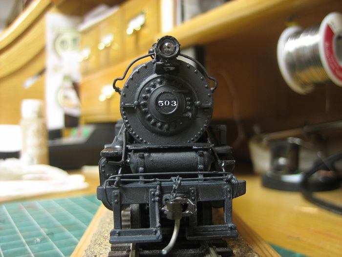 A replacement headlamp has been installed and the tender light was added. It just received a coat of paint so when that is dry I'll add decals to the rear number boards.