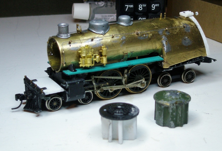 * I can see the light at the end of the tunnel. Some piping and railings are to be done. Also, a running board to be made and mounted, on the side seen up on the firebox side. I didn't like the original Mantua one. The last main scratch built parts to be made and applied. They are the ash pan dumping whatever they are. Collectors, scoops, releases. I don't really know what they are called. A 1915 article calls them " Conical Ash pans " Well whatever they are called two will be made. There are 4. The two centered on the sides of the firebox and easily seen will be reproduced and mounted. My rear truck is mounted in a normal way and does swing side to side more than the prototype. I hope the new detail will not get in the way.